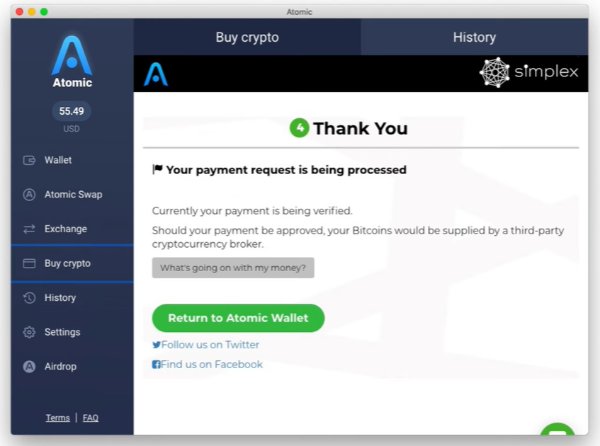 Click “Return to Atomic Wallet” and select “History” to check your transaction.